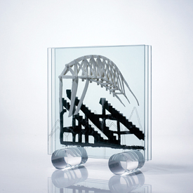 Using overlapping layers of glass and ceramic she creates three dimensional images.